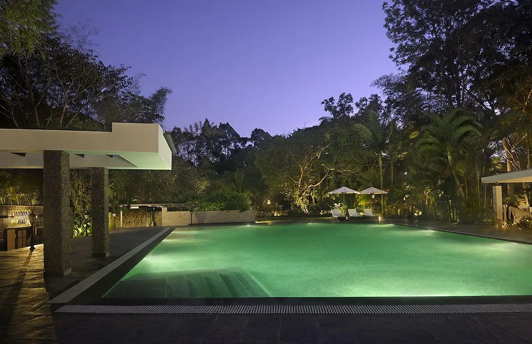 Amanvana Spa Resort, Coorg features luxurious private bungalows and a renowned spa on the banks of the River Kaveri. This family-friendly 4-star Kushalnagar hotel boasts a range of amenities including a swimming pool, EV charging station, and multiple dining options specializing in Coorg cuisine.