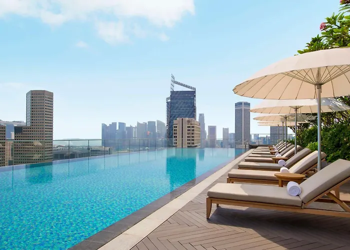 In terms of leisure, the hotel features a well-equipped fitness center, outdoor pool, and sauna. The hotel's chic interiors are inspired by the Kampong Glam neighborhood, designed by renowned architect Andre Fu.
