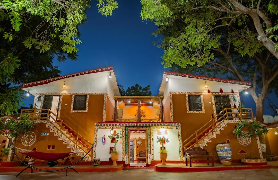 Rooms at Chokhi Dhani The Ethnic 5 reflect Rajasthani heritage with colorful decor and modern amenities. Each room is designed with elements such as frescoes and period furniture, ensuring comfort amidst traditional aesthetics. Suites like the Deluxe Royal Cottage feature luxurious baths and spacious layouts.