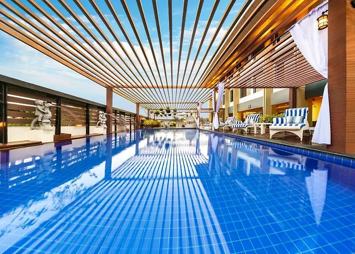 Recreational facilities include a large outdoor pool, a fully equipped fitness center, and Bodhi Spa for relaxation. The hotel also features four banquet halls suitable for various events, showcasing impressive interiors and modern amenities. Event planning services are available for business meetings and private gatherings.