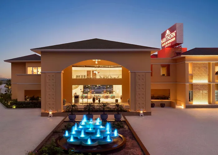 Hawthorn Suites By Wyndham Dwarka is a 5-star hotel with an 8.5/10 rating, offering a contemporary, eco-spiritual experience. The hotel features a luxurious spa, a fitness center, and a vegetarian multi-cuisine restaurant with a wellness-focused menu. Guests can explore nearby landmarks such as the iconic Dwarkadhish Temple and the scenic Dwarka Beach.