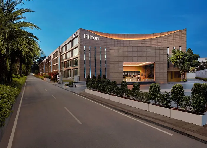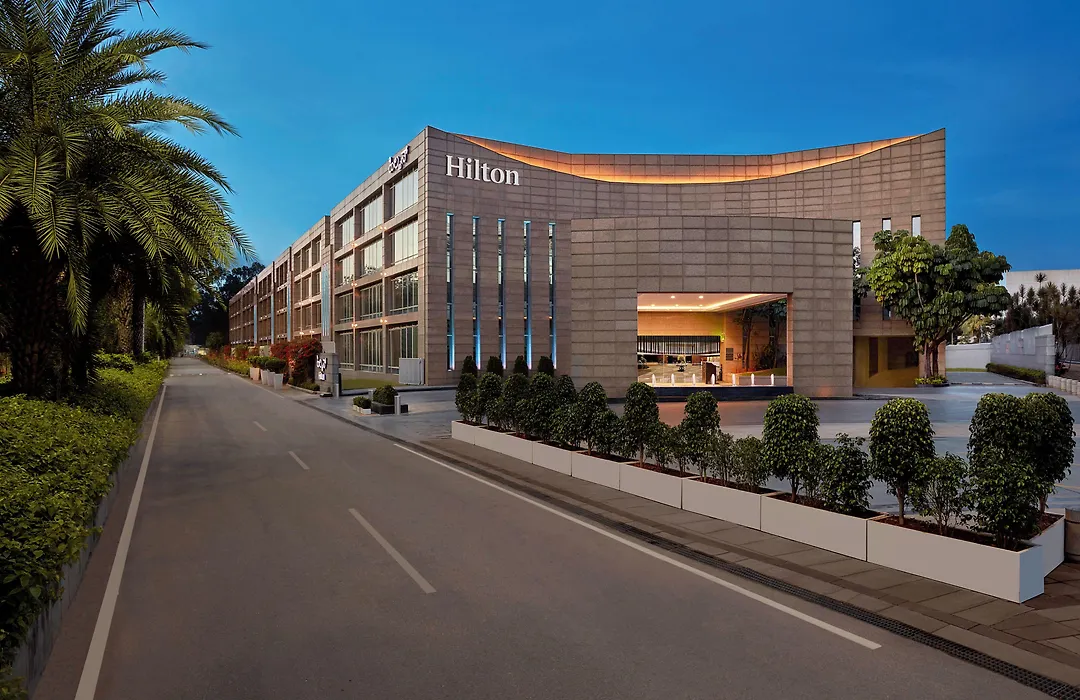 Leisure facilities encompass a fitness center and an outdoor pool. The in-house spa offers aroma massages, while a kids' play area caters to families. Hilton Bangalore Embassy Golflinks also has business resources, ensuring efficient meetings with equipped spaces and a 24-hour business center.
