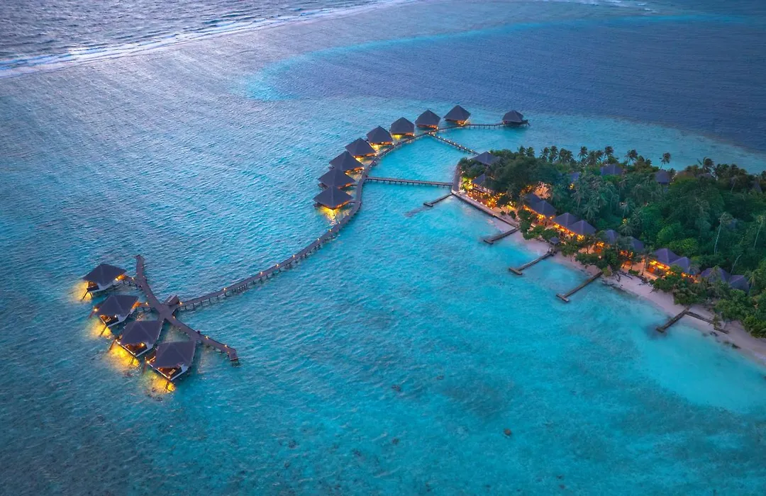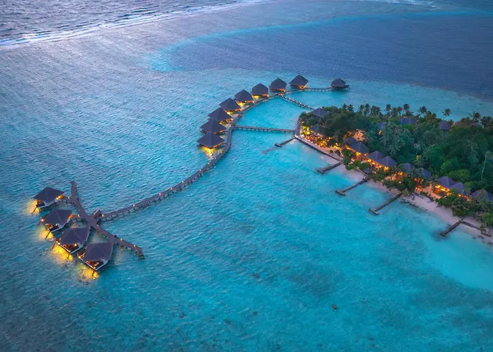 Adaaran Club Rannalhi offers an all-inclusive experience with a 4-star rating. The resort features water bungalows, diverse dining options, and a myriad of leisure activities. Guests can indulge in snorkeling and a variety of spa treatments.