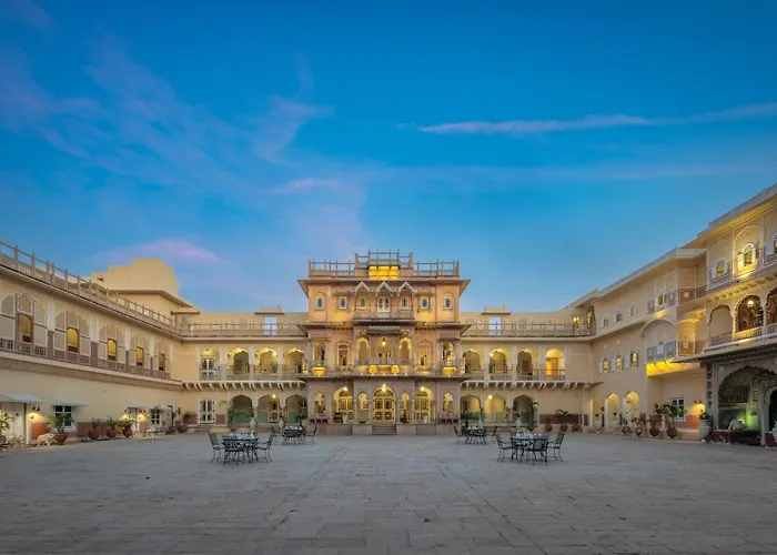 Chomu Palace Jaipur - A Heritage Hotel is a 4-star palace hotel that reflects the regal history of Rajasthan. Guests can enjoy luxurious accommodations alongside modern amenities such as a spa and outdoor pool. The hotel features 70 suites characterized by an aristocratic background and rich heritage.