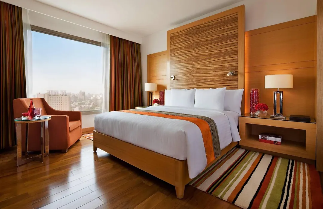 Courtyard By Marriott Gurugram Downtown offers 198 well-equipped hotel rooms and suites featuring LED TVs, high-speed Wi-Fi, marble bathrooms, and plush featherbeds. All rooms provide 24-hour room service, ensuring convenience for guests.
