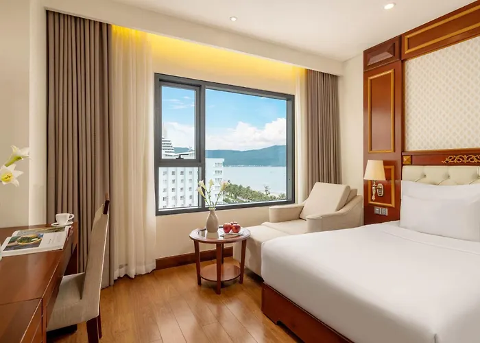 Accommodations at Dlg Hotel Danang are designed to offer views of the East Sea, featuring 237 rooms equipped with modern amenities such as flat-screen TVs and minibars. Choices range from the Premium Deluxe King Ocean View for luxurious comfort to the Family Ocean View with two separate bedrooms for families.