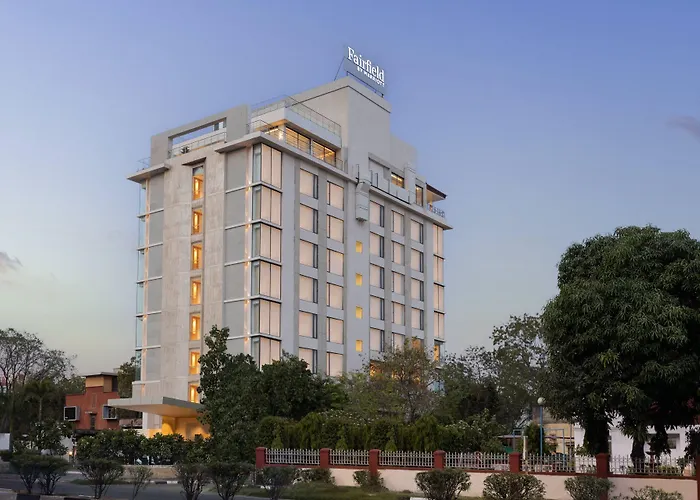 Fairfield By Marriott Jaipur, a 5-star hotel with an 8.1/10 rating on Booking.com, features a modern design and upscale facilities. Guests can enjoy a rooftop terrace, restaurant, and a well-equipped fitness center on-site.