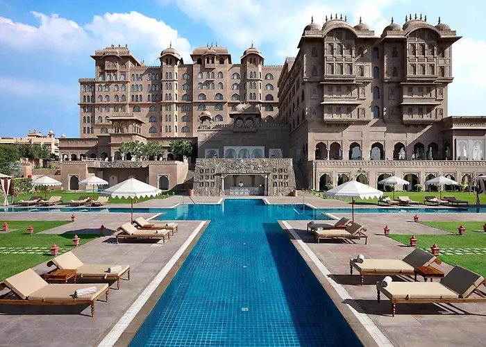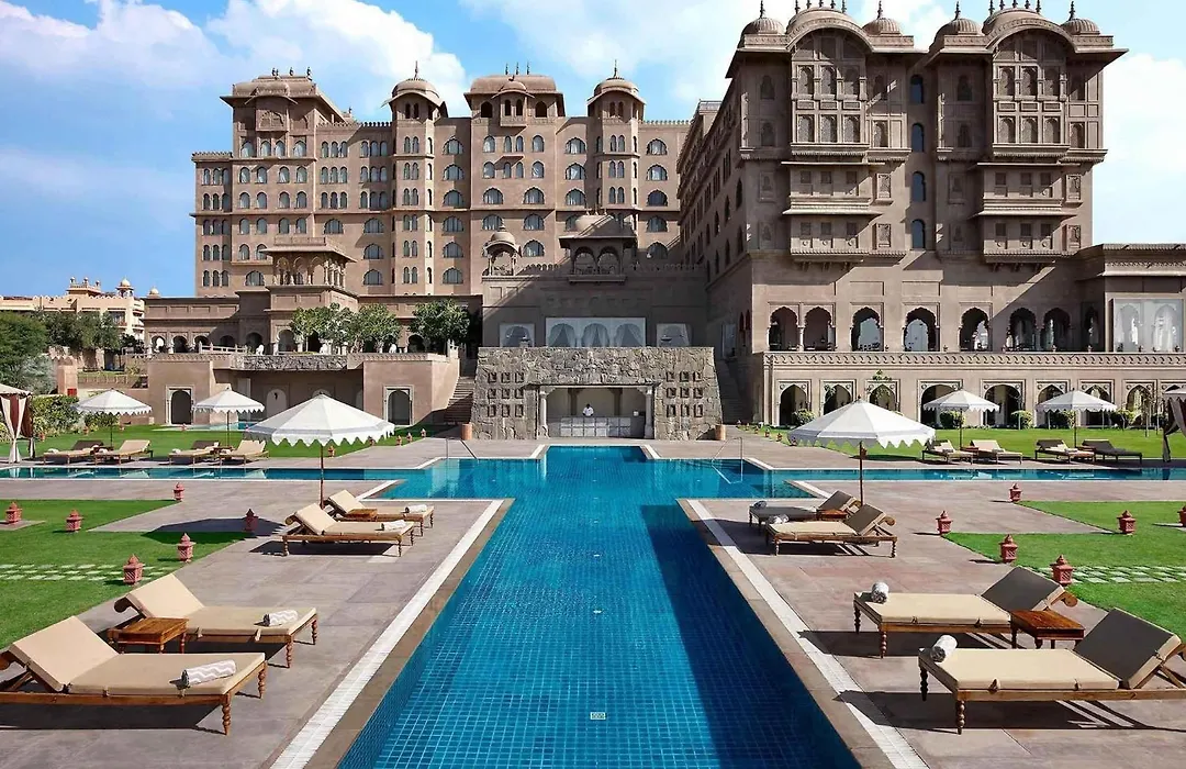 Fairmont Jaipur, a luxurious 5-star hotel rated 9.1/10 on Booking.com, offers a combination of regal architecture inspired by the Mughal dynasty and modern comforts. Amenities include an outdoor pool, a health & fitness center, and a dedicated children's area. The hotel features 245 guest rooms, including 7 suites, each designed to reflect Rajasthani heritage.