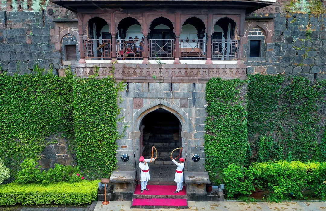 Fort Jadhavgadh -A Gadh Heritage Hotel is a 5-star property showcasing historical architecture and modern amenities. The hotel offers a unique cultural experience, including spacious accommodations, multiple dining options, and an outdoor restaurant under a century-old tree. Rated 8.7/10 on Booking.com, it serves as a captivating weekend getaway from city life.