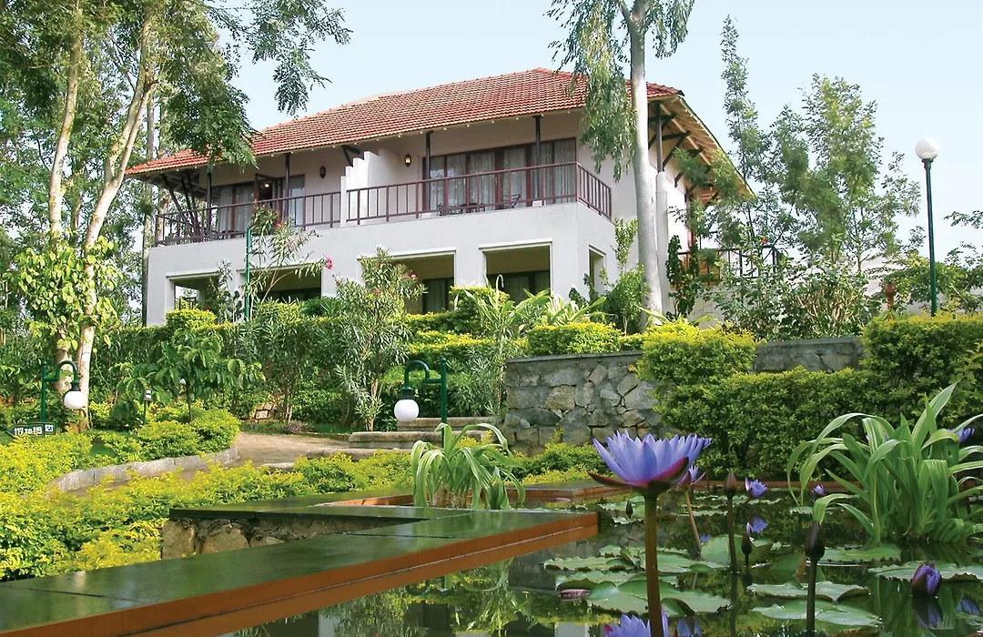 Gateway Chikmagalur, rated 8.5/10 on Booking.com, features spacious air-conditioned rooms and cottages with modern amenities. The hotel includes a swimming pool, fitness center, and offers a range of dining options, making it a suitable choice for both leisure and business travelers.