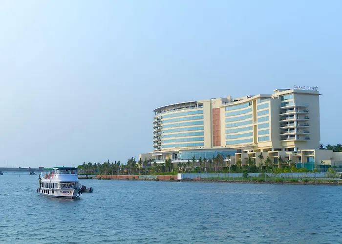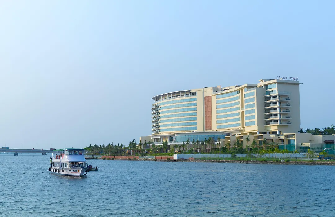 Grand Hyatt Kochi Bolgatty is a 5-star waterfront urban resort overlooking the backwaters of Vembanad Lake. The hotel features two swimming pools, a fitness center, and access to a business center. Guests can enjoy a diverse array of dining options, including local cuisine and premium amenities.