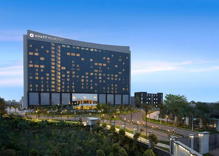 Hyatt Regency Gurgaon is a 5-star convention hotel featuring comprehensive facilities and luxurious style. Notable amenities include the Shvasa Spa, outdoor pools, and a 24-hour fitness center. The hotel accommodates business travelers and hosts events for up to 3000 attendees.
