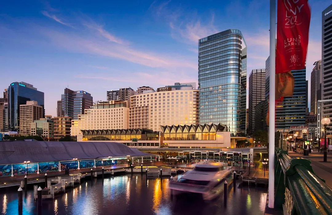 Hyatt Regency Sydney is a 5-star hotel rated 8.3/10 on Booking.com, featuring modern accommodations and extensive amenities, including a state-of-the-art fitness center and versatile meeting spaces. Guests can explore dining options such as the acclaimed Zephyr sky bar with panoramic views of Darling Harbour.