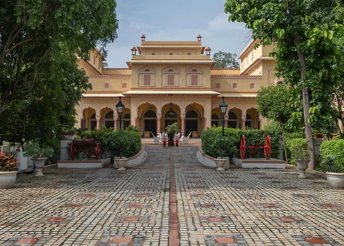 Hotel Narain Niwas Palace, a 4-star heritage property, offers 52 well-appointed rooms and suites featuring modern amenities amidst the royal ambiance of Jaipur. The hotel includes a large garden, outdoor pool, unique dining experiences, an on-site shopping gallery, and organizes traditional cultural shows.