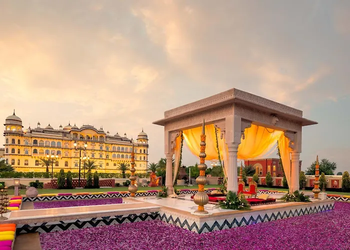 Noormahal Palace Hotel is a luxurious 5-star property reflecting traditional Moghul and Rajputana architectural styles. Amenities include a full-service spa, outdoor swimming pool with sunken bar, and a gourmet restaurant. Guests can enjoy 125 elegantly designed rooms with modern comforts.
