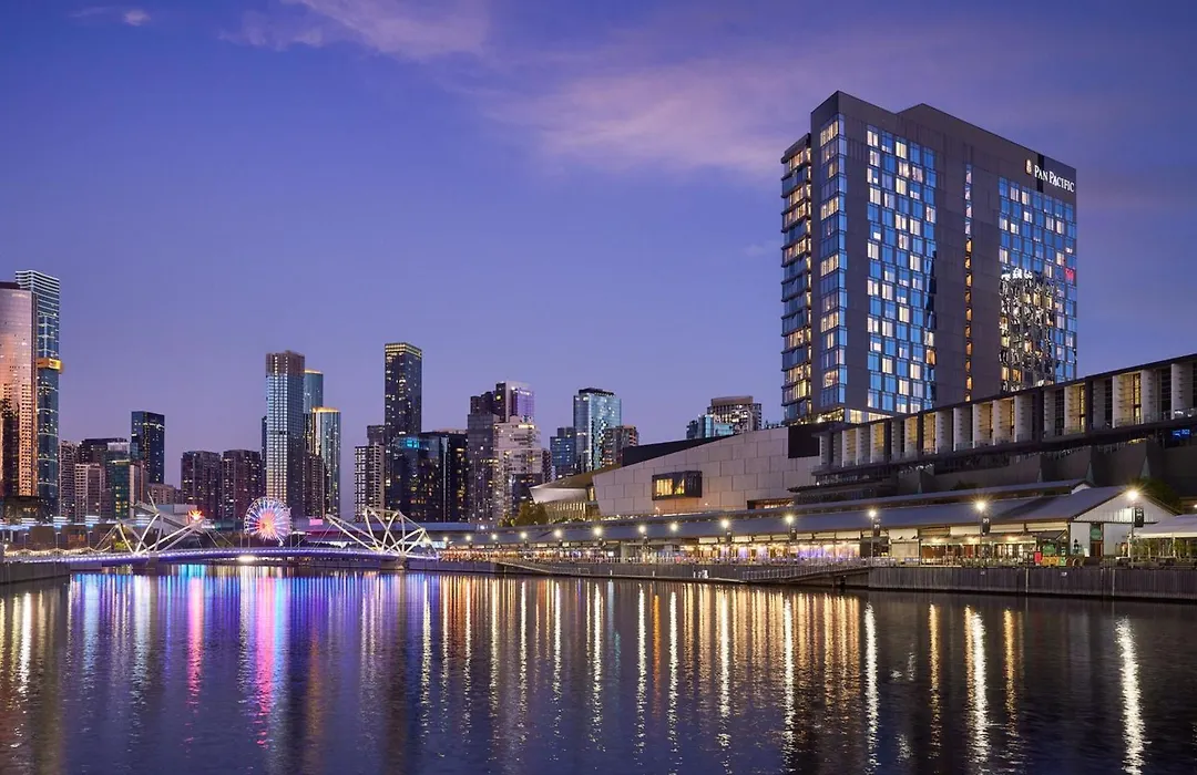 Pan Pacific Melbourne, a 5-star hotel with a 9.0/10 Booking.com rating, features luxurious accommodations with panoramic views of the city, Port Phillip Bay, or the Yarra River. Notable amenities include direct access to the Melbourne Convention and Exhibition Centre and a dedicated concierge team to assist with local experiences.