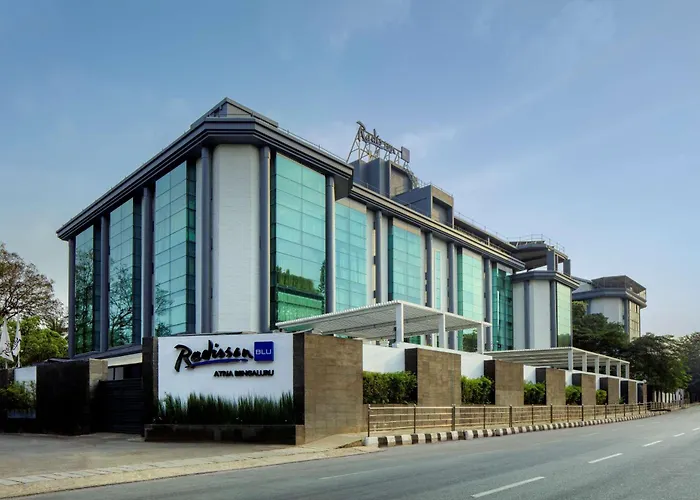 Radisson Blu Atria Bengaluru, a 5-star hotel with an 8.0/10 rating on Booking.com, features modern design and multiple dining options. Guests can enjoy amenities such as a well-equipped fitness center, a spa, and a swimming pool.