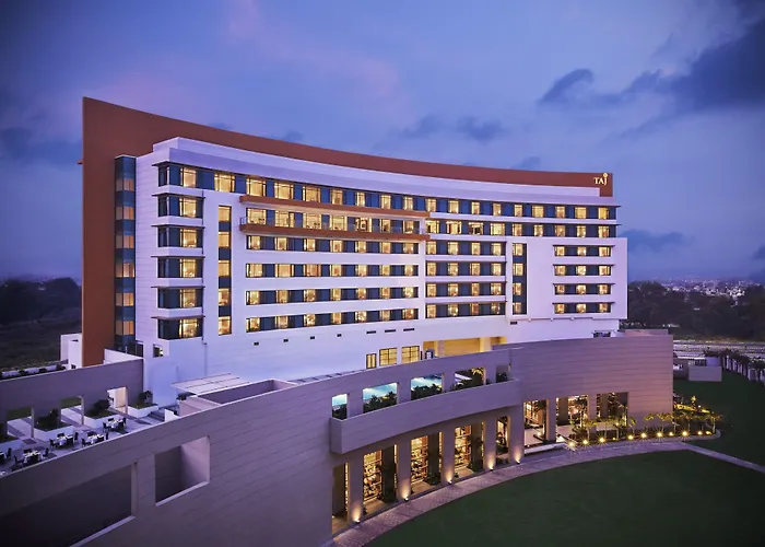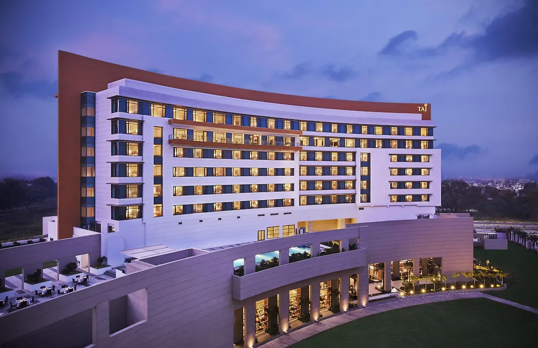 Leisure facilities at Taj Swarna include an outdoor pool, a health club, and the J Wellness Circle spa offering Ayurvedic treatments. The hotel also features event spaces totaling 668.9 m² for conferences and seminars, accommodating both business and social gatherings.