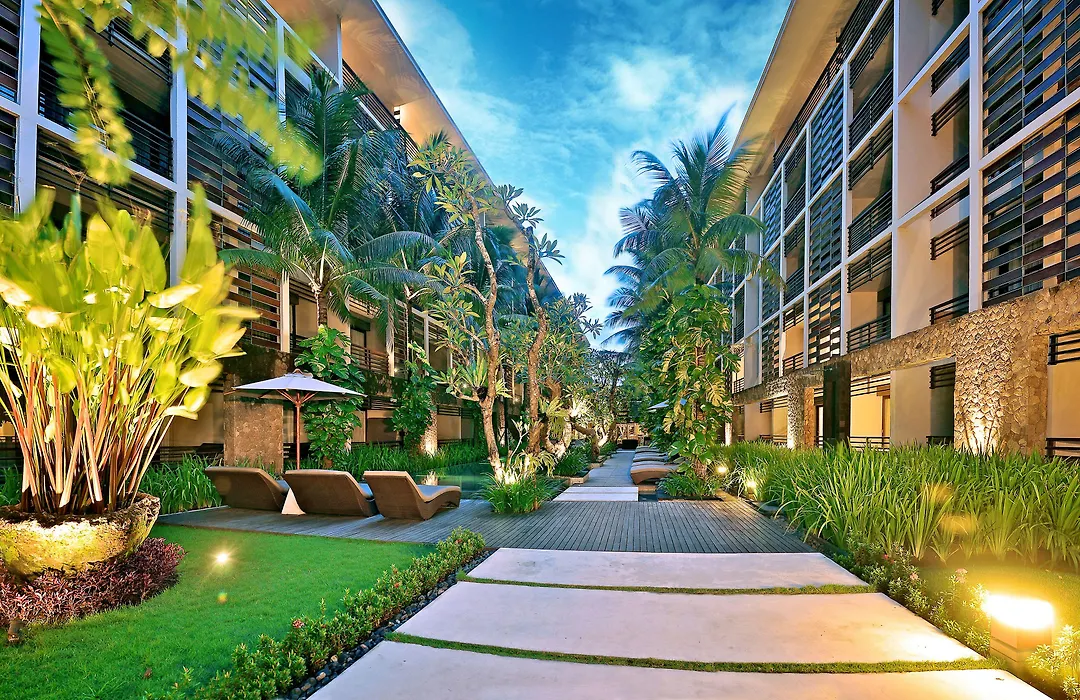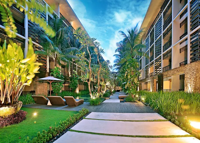 The Haven Bali Seminyak, a 4-star hotel rated 8.5/10 on Booking.com, features spacious rooms with modern amenities and provides easy access to the beach and local shopping. The property includes two outdoor pools and a range of dining options including Sabeen Restaurant.