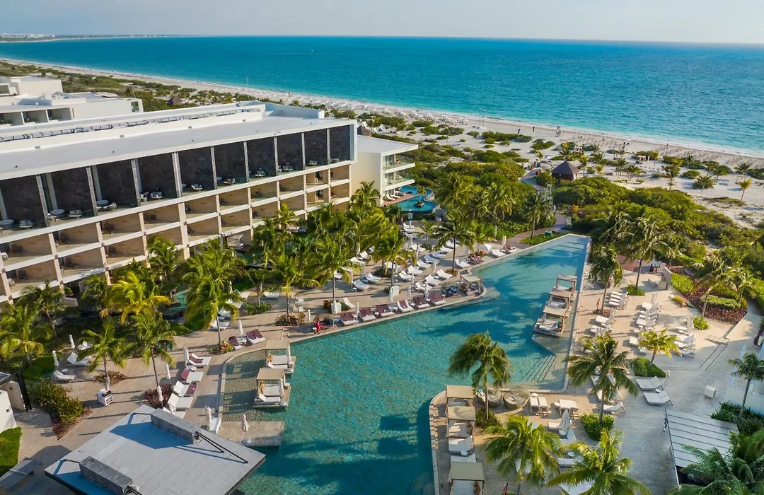 Trs Coral Hotel (Adults Only), a 5-star Cancun hotel with an 8.5/10 rating on Booking.com, features modern architecture, luxurious accommodations, and extensive amenities tailored for adult guests. The hotel provides access to pristine beaches, multiple dining options, and exceptional wellness services.