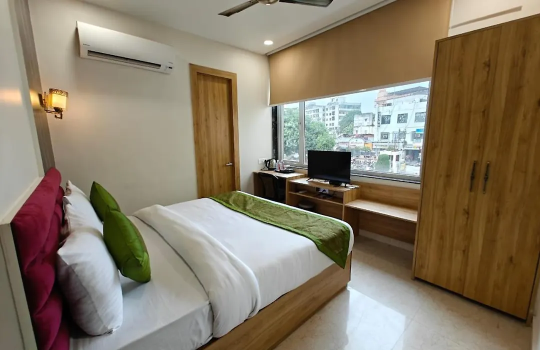 Rooms at Hotel Utsav Grand include a flat-screen TV, wardrobe, and a private bathroom with free toiletries. Triple and double room options provide seating areas and garden views.