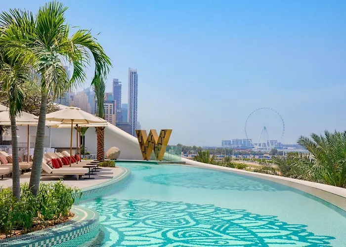 W Dubai - Mina Seyahi (Adults Only) is a luxury 5-star hotel featuring a bold design on the Jumeirah Beach coastline. This Dubai hotel includes a private beach, a gym, and an infinity pool overlooking the Palm Jumeirah.
