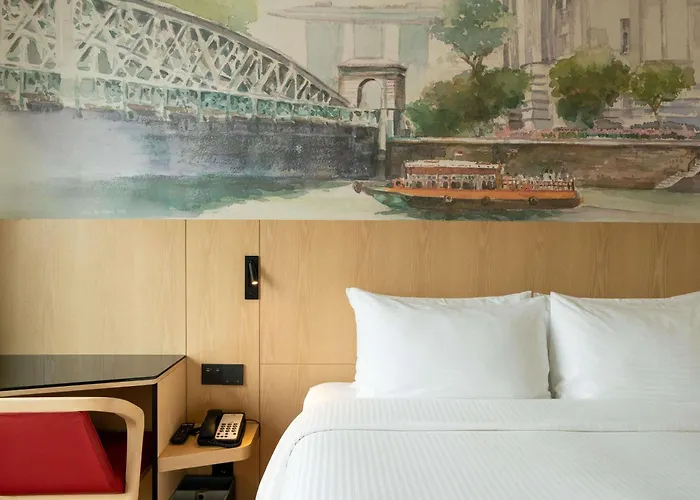 Ibis Singapore On Bencoolen is a multi-award-winning 4-star hotel with a rating of 8.2/10 on Booking.com, located in the heart of the shopping district of Bugis. This eco-friendly hotel promotes sustainability through the use of environmentally beneficial alternatives to plastic, offering modern amenities and a casual dining experience.
