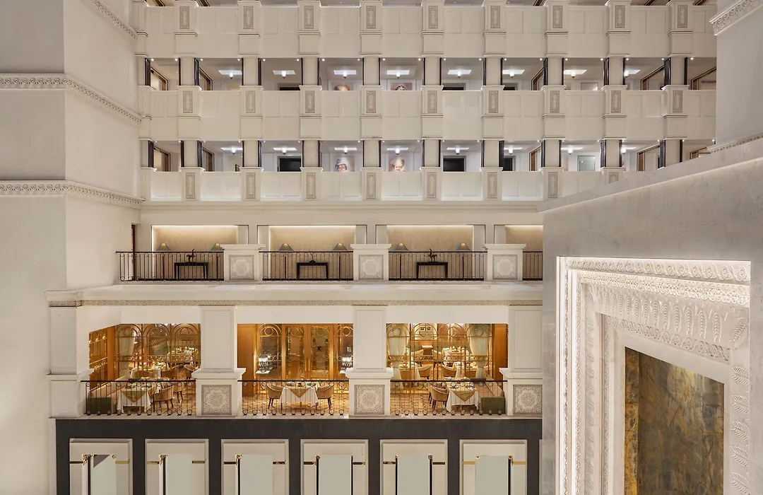Dining options include Adalaj Pavilion for all-day dining, Royal Vega for vegetarian specialties, and Peshawri for North-West Frontier cuisine. Fabelle - The Chocolate Boutique offers handcrafted chocolates for an indulgent experience.