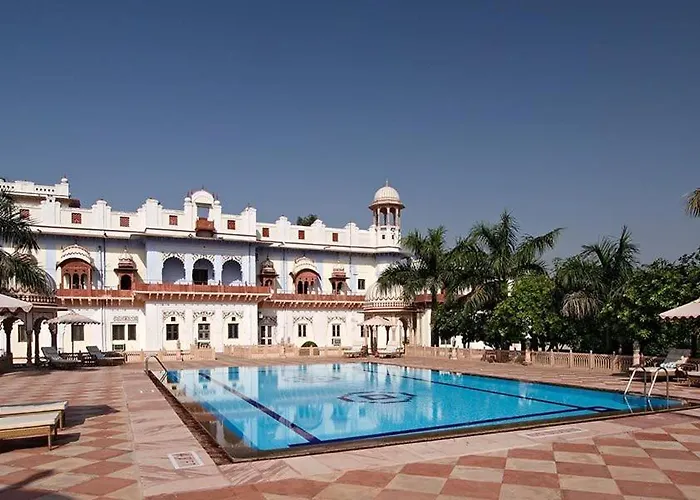 Laxmi Vilas Palace, a 4-star Bharatpur hotel rated 8.0/10 on Booking.com, offers an elegant mix of heritage and modern amenities. Guests can enjoy an outdoor pool, a garden, and a stocked bar, making it suitable for both leisure and relaxation.
