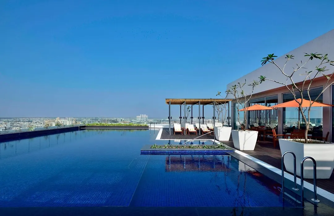 Marriott Executive Apartments Hyderabad offers elegantly appointed one- and two-bedroom luxury apartments in HITEC City, a busy tech industry hub. Guests can indulge in a rooftop pool and a 24-hour food and beverage outlet called Market Place, complementing the luxurious accommodations rated 8.9/10 on Booking.com.