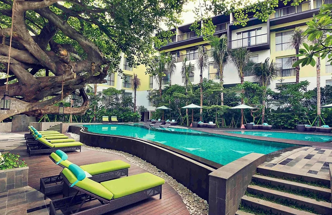 Mercure Bali Legian offers a 4-star stay with an outdoor swimming pool, spa, and wellness centre. The hotel caters to both leisure and business travelers, featuring modern accommodations and a diverse culinary experience.