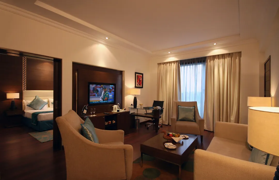 Rooms at Radisson Jaipur City Center include the Business Class Room, Suite, and Superior Rooms with options for king and twin configurations. Each includes air conditioning, flat-screen TV, mini-bar, and free toiletries.