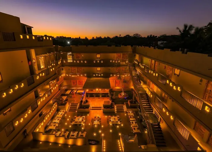 3102Bce - A Vedic Resort offers a unique glimpse into ancient Vedic civilization with a meticulously designed ambiance. This 5-star Vagator hotel features 37 air-conditioned rooms, a rooftop pool, and complimentary WiFi throughout the property.