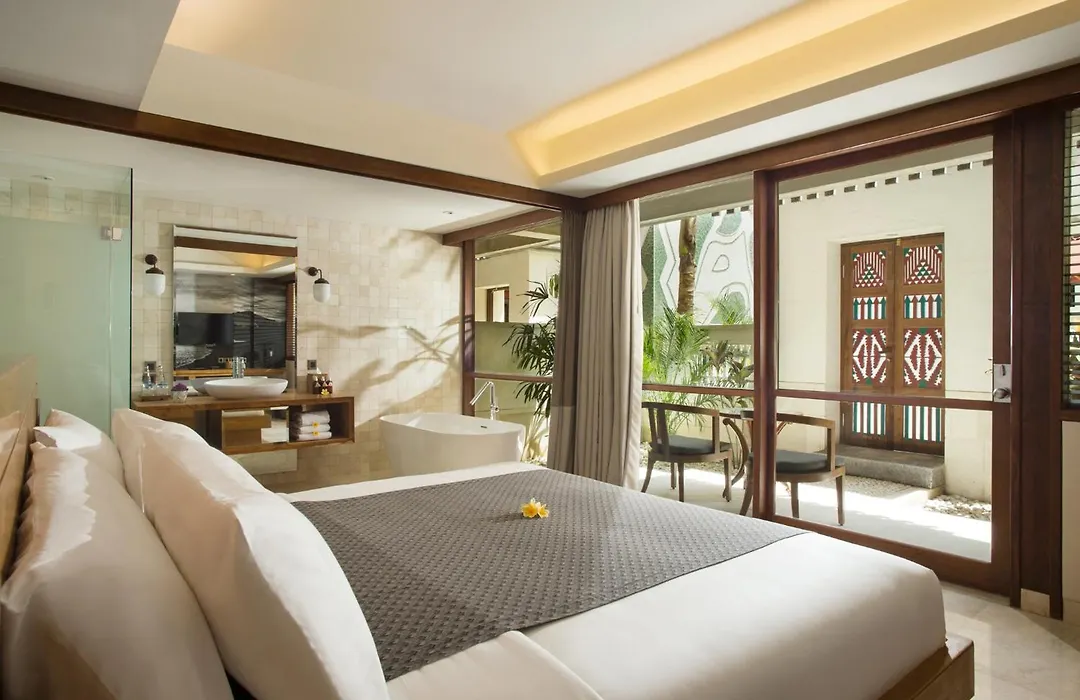 Amnaya Resort Kuta is a 4-star Kuta (Bali) hotel featuring a long outdoor swimming pool, authentic Indonesian cuisine, and a full-service spa. The resort blends modern-ethnic aesthetics with natural elements, reflecting Bali's hospitality and culture.
