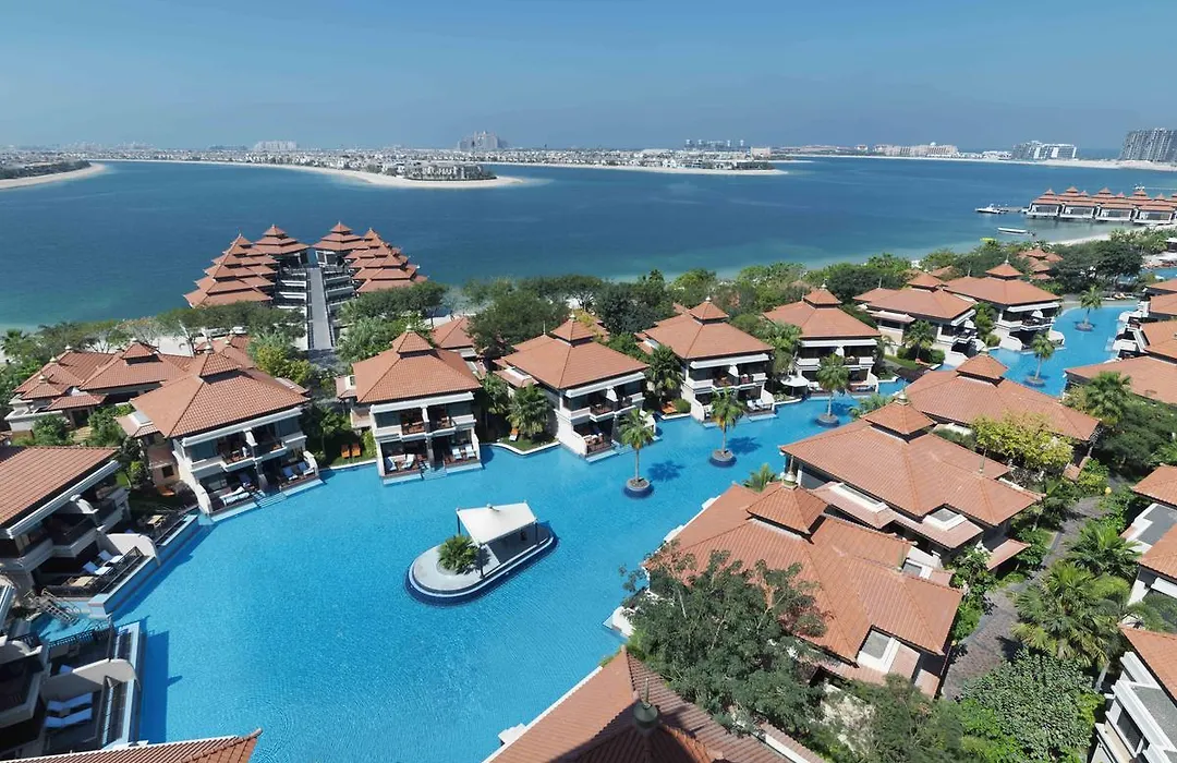 Anantara The Palm Dubai Resort, a 5-star Dubai hotel, features the only overwater villas in the UAE, alongside three lagoon pools and a private beach. Guests can enjoy a range of amenities including a premium spa, fitness center, and multiple dining options.