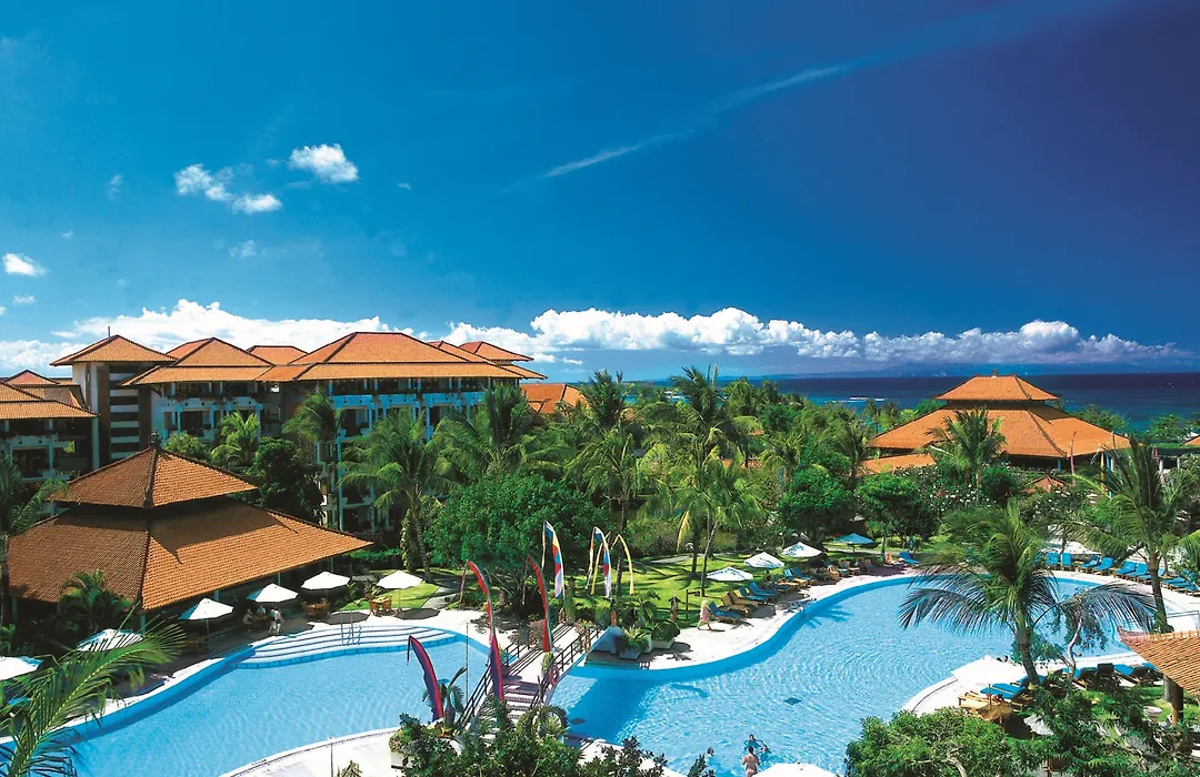 Ayodya Resort Bali, a 5-star hotel with an 8.7/10 rating, features elegant Balinese design elements and luxurious amenities. This family-friendly resort boasts four pools, a fitness center, and a full-service spa, set within 12 hectares of landscaped gardens along a private beach.