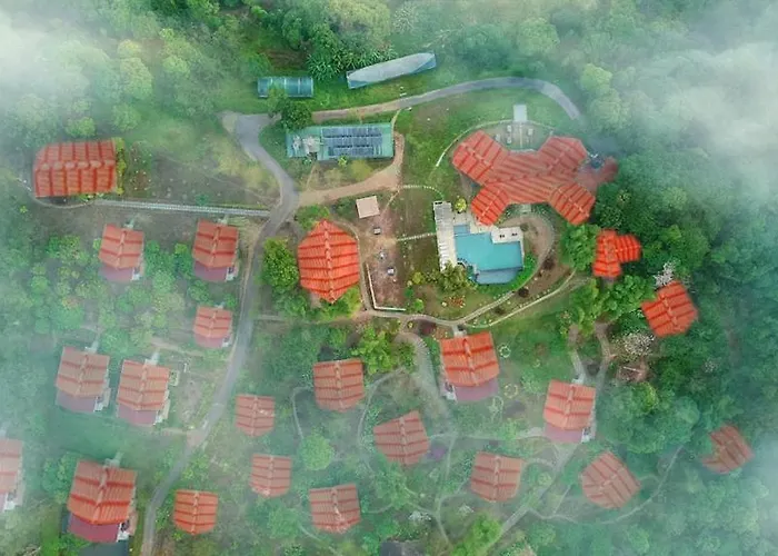 Heritage Resort Coorg, a 4-star hotel with a 7.9/10 rating on Booking.com, features spacious cottages and luxurious one-bedroom villas with scenic views. Guests can indulge in a variety of dining options and relax by the infinity pool at this family-friendly resort in Madikeri.