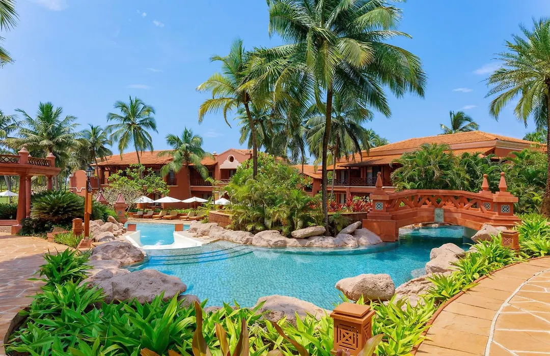 ITC Grand Goa, A Luxury Collection Resort & Spa, Goa offers a blend of traditional Goan design and luxury amenities in Utorda, featuring an extensive free-form lagoon-style swimming pool, a wellness spa, and multiple dining options. This 5-star resort allows for an immersive experience of local culture while providing top-tier services.