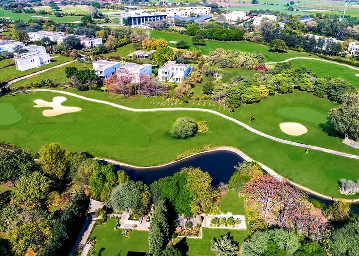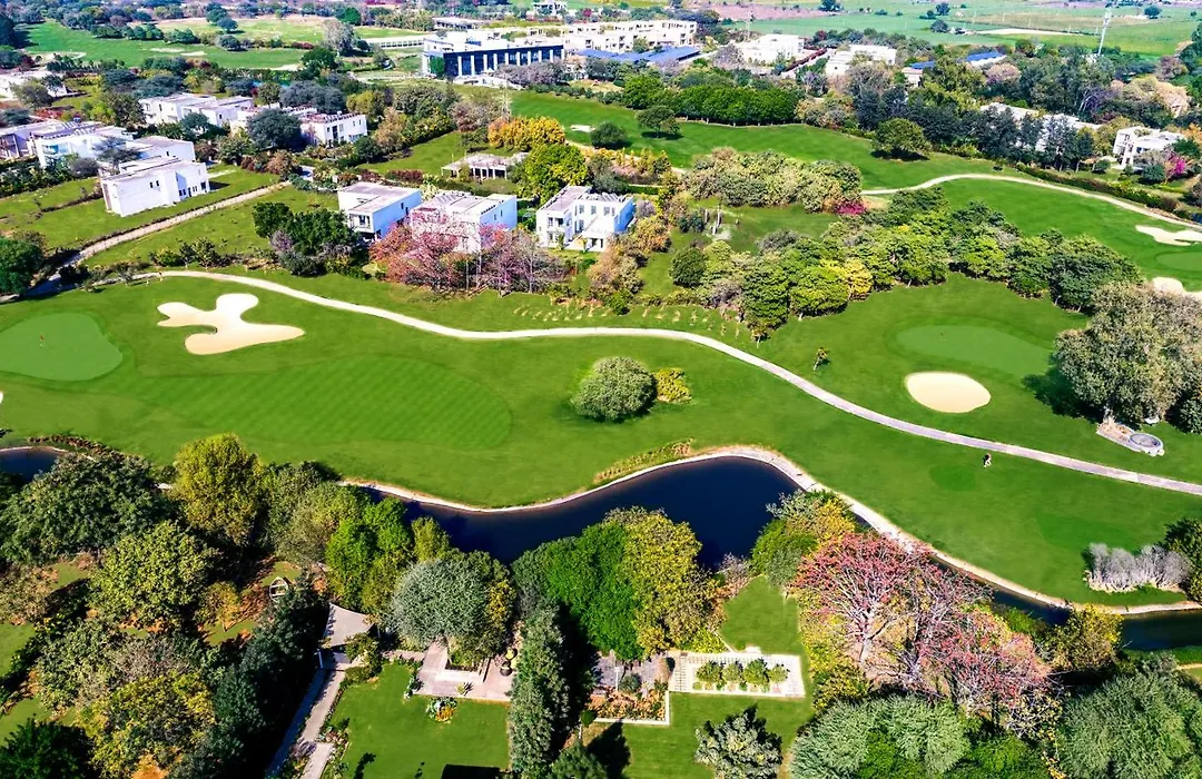 Karma Lakelands Golf Resort & Residences is a 4-star eco-responsible golf resort spread over a sprawling 109 hectare campus featuring luxury accommodations and diverse recreational activities. Amenities include a golf course designed by Pacific Coast Design, multiple dining options, and a dedicated event space. This Manesar hotel emphasizes sustainability with initiatives in organic farming and eco-friendly practices.