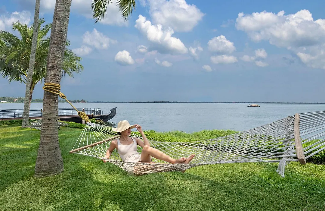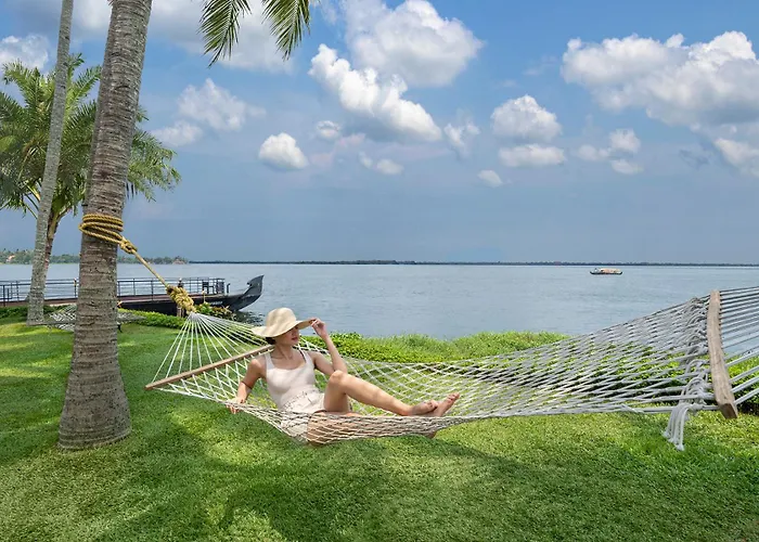 Kumarakom Lake Resort, a 5-star hotel rated 9.4/10 on Booking.com, offers luxury accommodations amidst lush greenery along the serene banks of Lake Vembanad. Features include multiple pools, a traditional Kerala teashop, and a heritage Ayurvedic retreat. This luxury heritage resort is designed for a tranquil vacation experience.