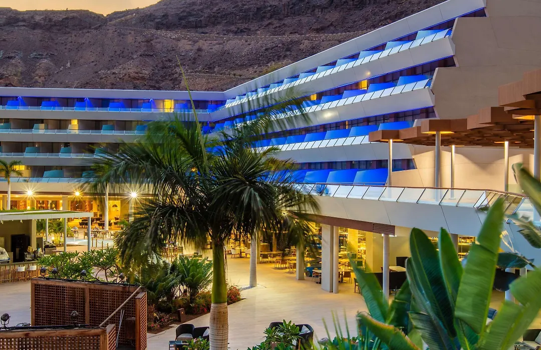 The resort offers various leisure activities including three heated swimming pools, a beach volleyball court, a spa with treatments focused on hydration and detoxification, and yoga classes. A rock-climbing wall and dedicated children's club provide entertainment options for families. Guests can easily reach outdoor attractions such as the Maspalomas Dunes and Roque Nublo.