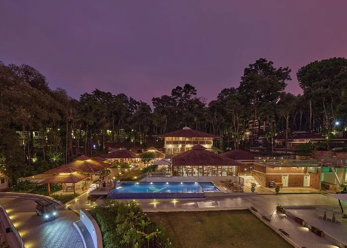 Regenta Resort Sakleshpur, a 5-star hotel rated 7.9/10 on Booking.com, features an outdoor swimming pool, fitness center, and a garden. Guests can enjoy a buffet breakfast and dine on Chinese cuisine at the restaurant.