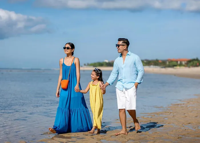 Renaissance Bali Nusa Dua Resort is a 5-star hotel with a rating of 9.1/10 on Booking.com, offering modern accommodation with free bikes, an outdoor swimming pool, fitness centre, and various dining options. The hotel features a kids' club and a grand ballroom, catering to families and events alike.
