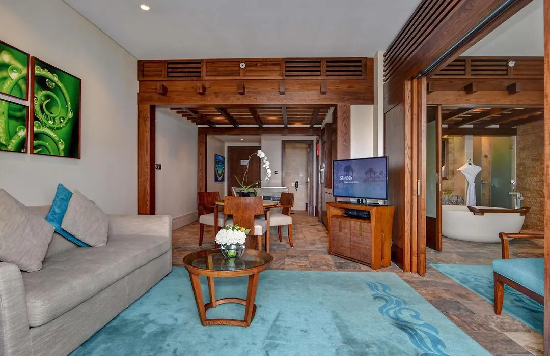 Sofitel Dubai The Palm Resort & Spa offers a luxurious 5-star beachfront experience on the East Crescent of Palm Jumeirah. Guests enjoy amenities such as a 2500 m² Sofitel SPA with L'Occitane, 11 dining options, and a 500-meter private beach. This Dubai hotel features contemporary design with Polynesian influences and modern comforts.