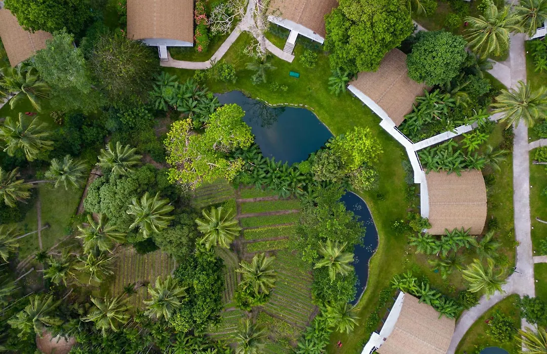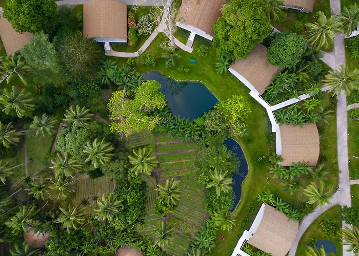 Taj Exotica Resort & Spa, Andamans is a 5-star luxury hotel featuring 54 stilted villas nestled within 19 hectares of tropical paradise, close to Radhanagar Beach. This premier resort includes an outdoor Olympic-length pool, fitness center, and the award-winning Jiva Spa, providing a comprehensive wellness experience.