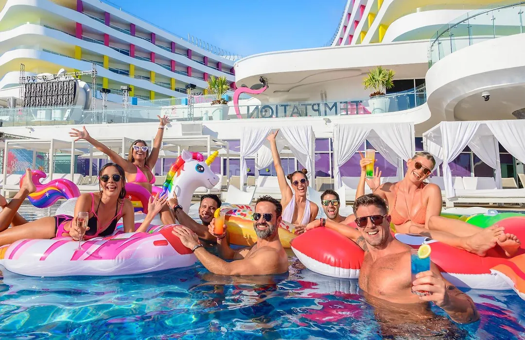 Leisure options include the iconic Bash nightclub, high-energy pools where bikini tops are optional, and daily themed pool parties. Spa Rosé offers an extensive menu for relaxation including massages and body treatments. Various organized activities provide opportunities for guests to engage socially and enjoy the vibrant party scene.