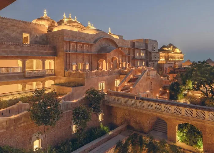 The hotel boasts a 2787.1 m² spa featuring yoga pavilions, a fitness center, and wellness programs personalized for each guest. Guests can enjoy the outdoor swimming pool or engage in cycling and wildlife excursions in the nearby Ranthambore National Park.